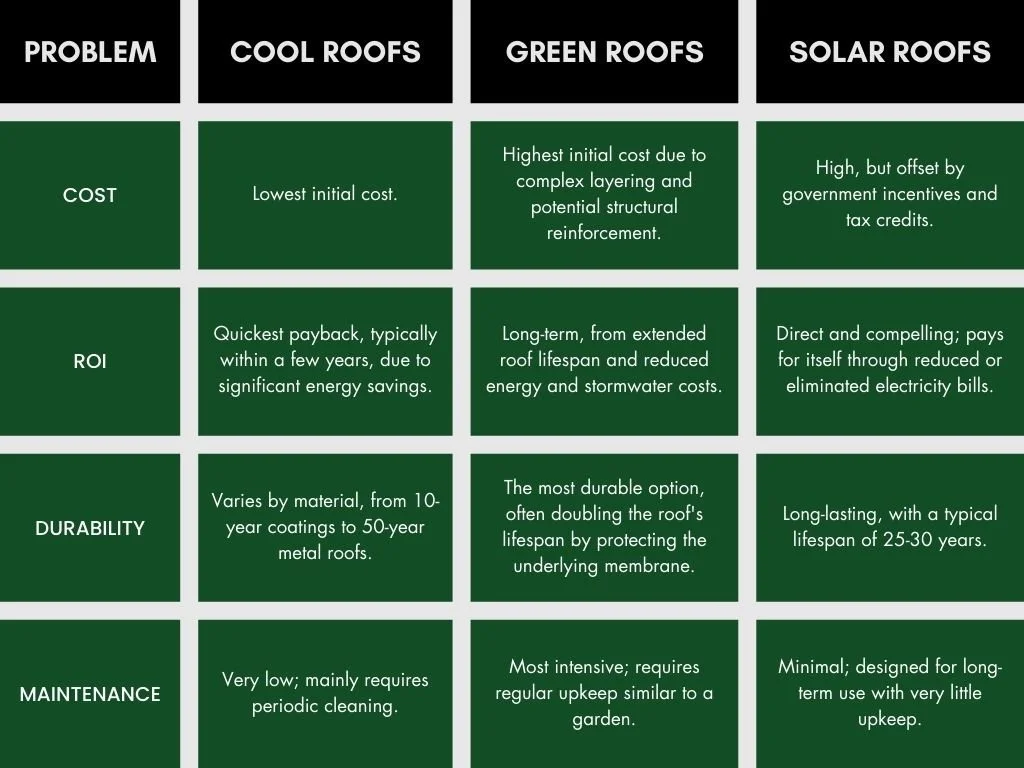 Assess Your Primary Goals: Begin by clearly defining your priorities. Is your main objective to drastically reduce energy bills? Is it to manage stormwater runoff more effectively? Or is it to generate your own power and reduce your carbon footprint? Your answers will help you narrow down the best-fit options, whether it’s a cool roof, a green roof, or a solar array.